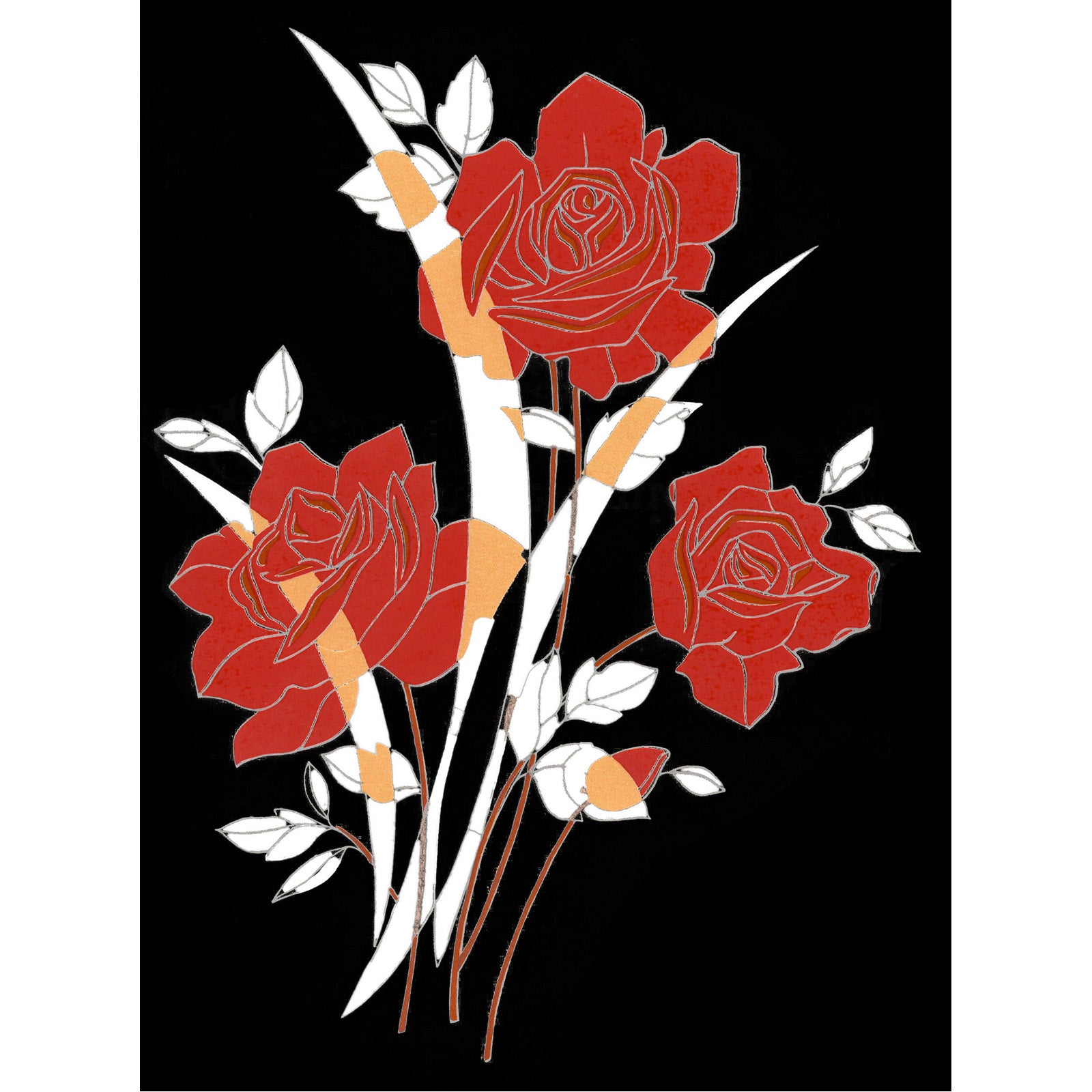 This is a stunning Art Deco design of red roses with silver and gold leaves.