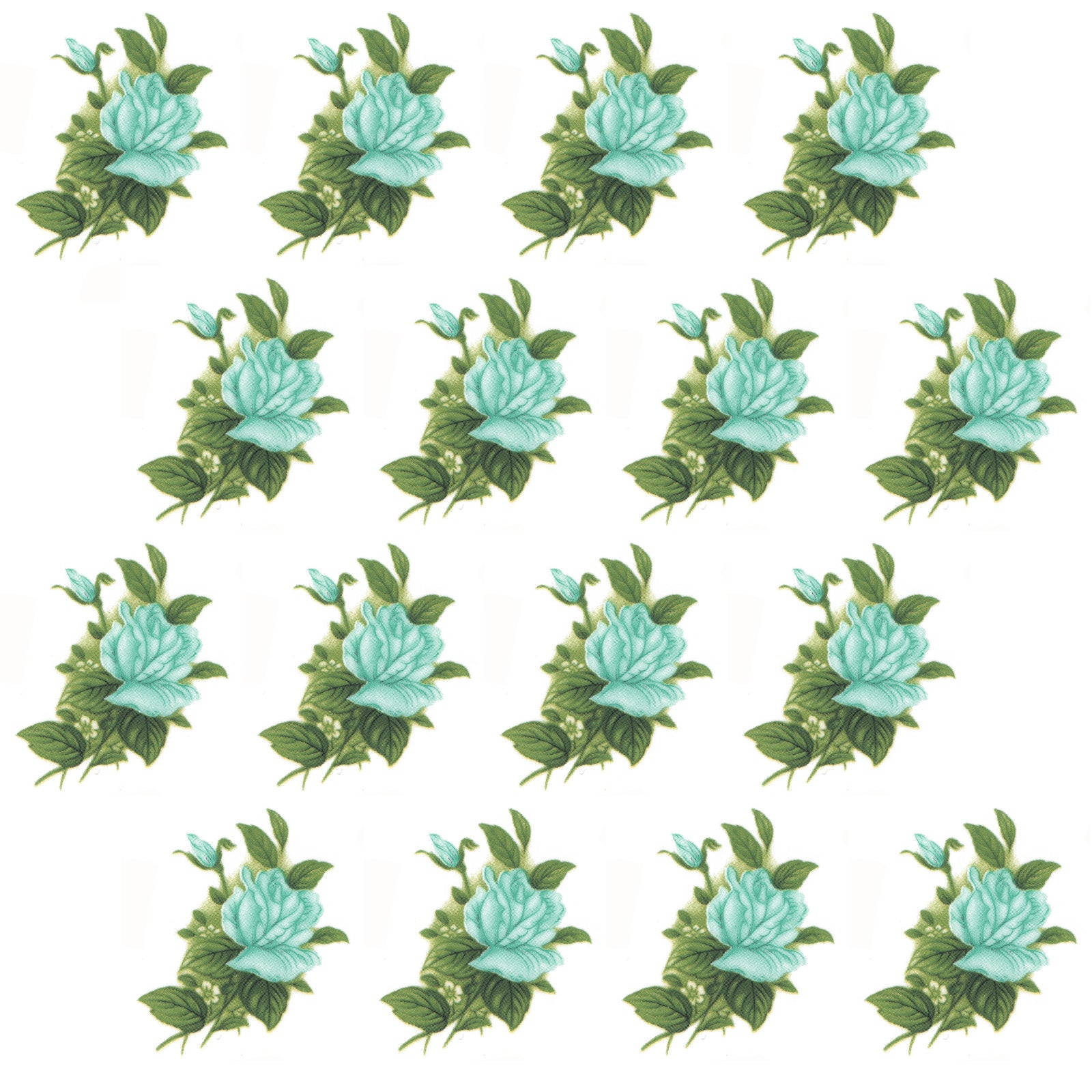 Aqua Green Rose Flower Spray 1.75 Inch 12 pcs Overglaze Waterslide Ceramic Decals