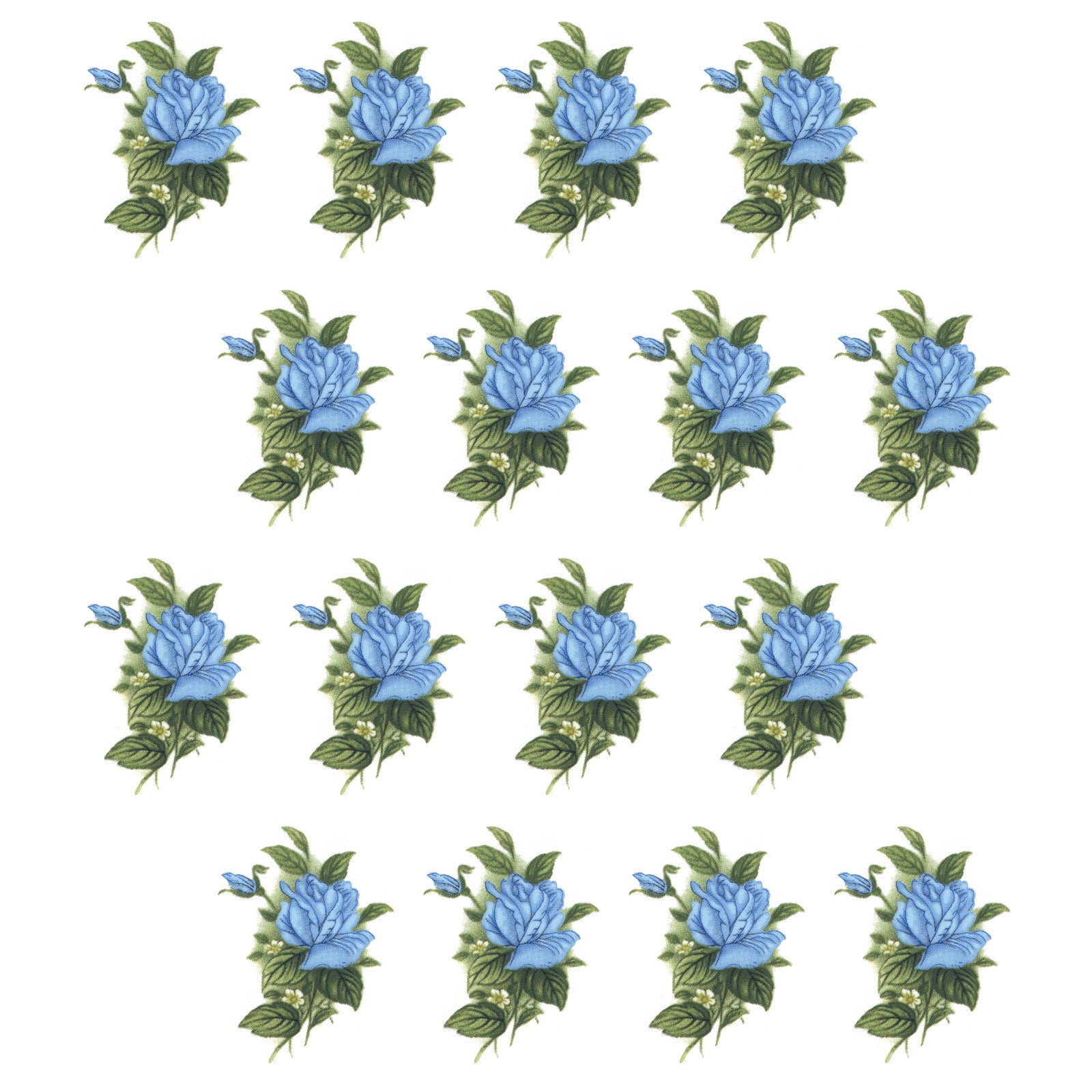 Blue Rose Flower Spray 1.75 Inch 12 pcs Overglaze Waterslide Ceramic Decals