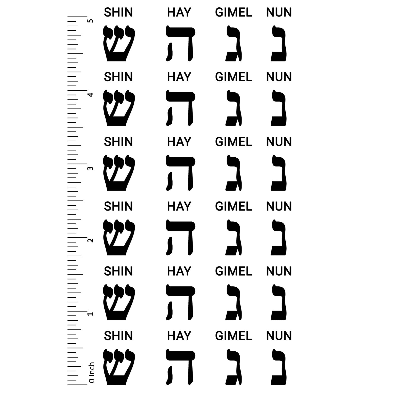 Dreidel Nes Gadol Haya Sham Ezra Font 6 sets 0.5 Inch Tall Black Fused Glass Decals