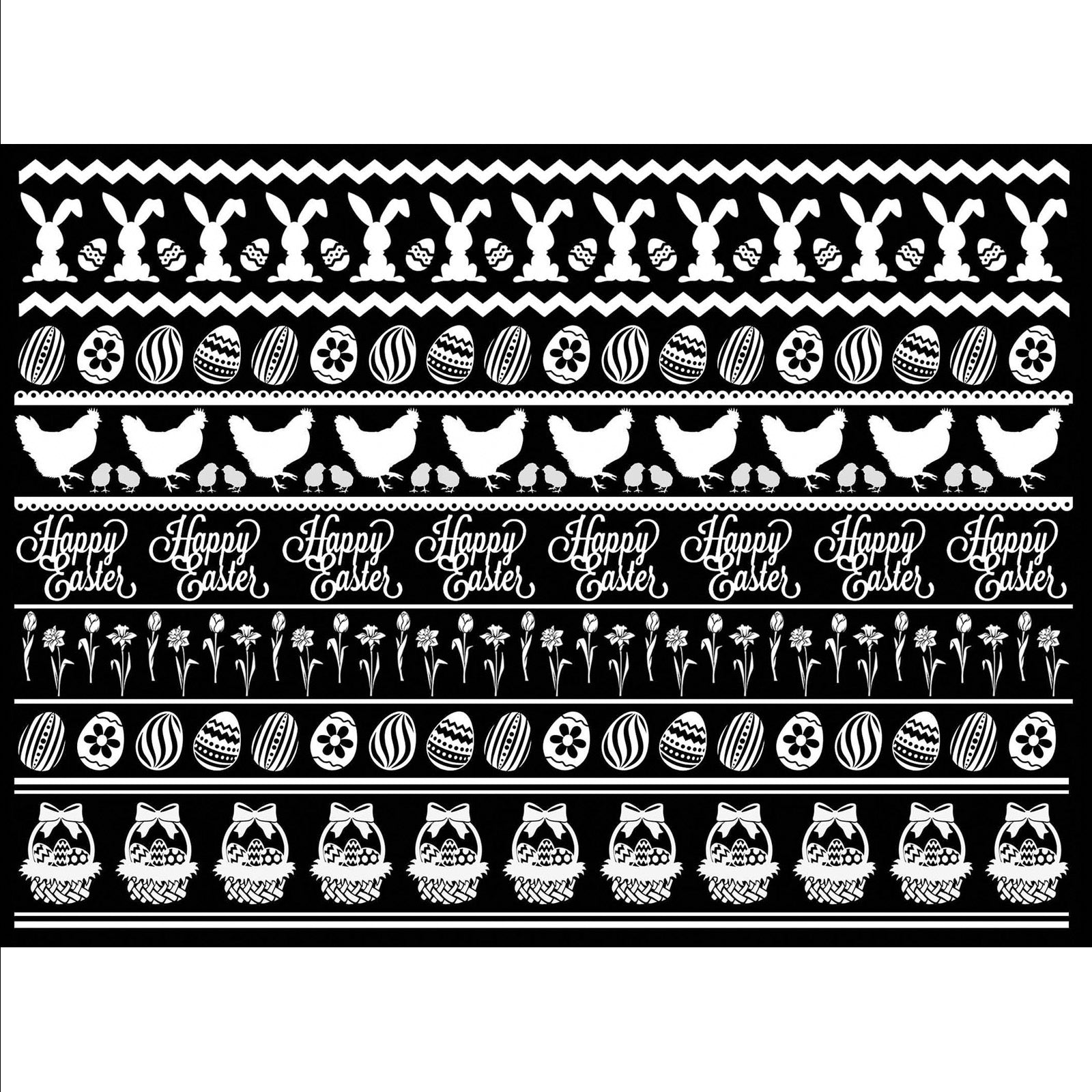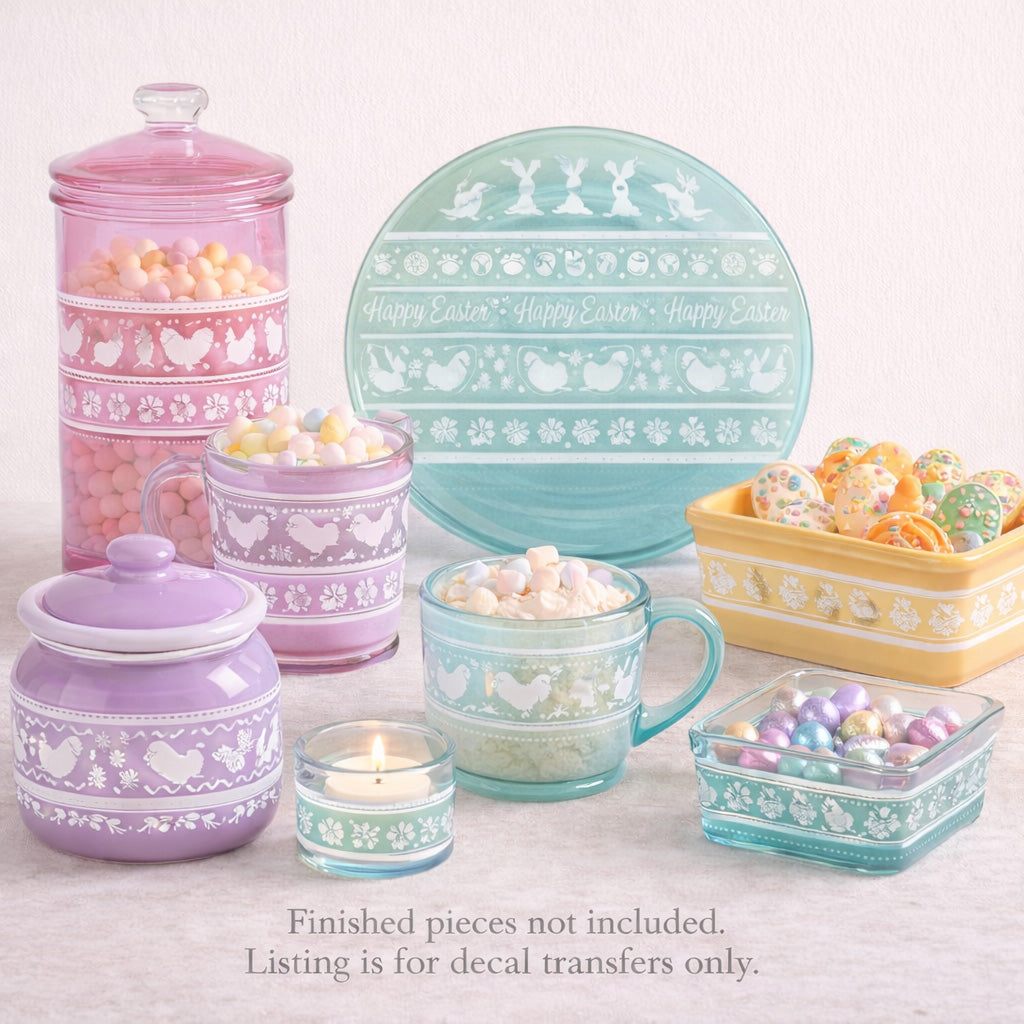 Easter Stripes Basket Rabbit 5 x 7 Inch White Fused Glass Decal