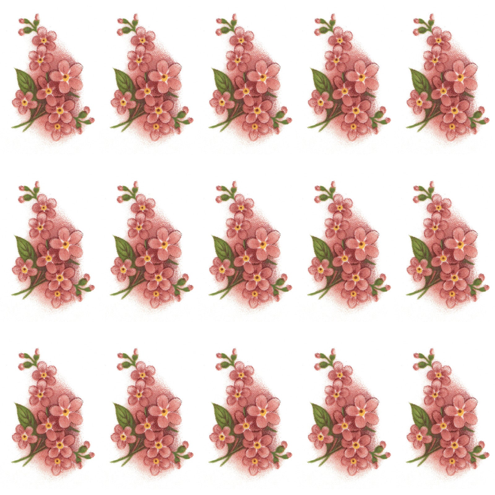 Forget Me Not Peach Pink Flowers Spray 1.25 Inch 15 pcs Ceramic Waterslide Decals