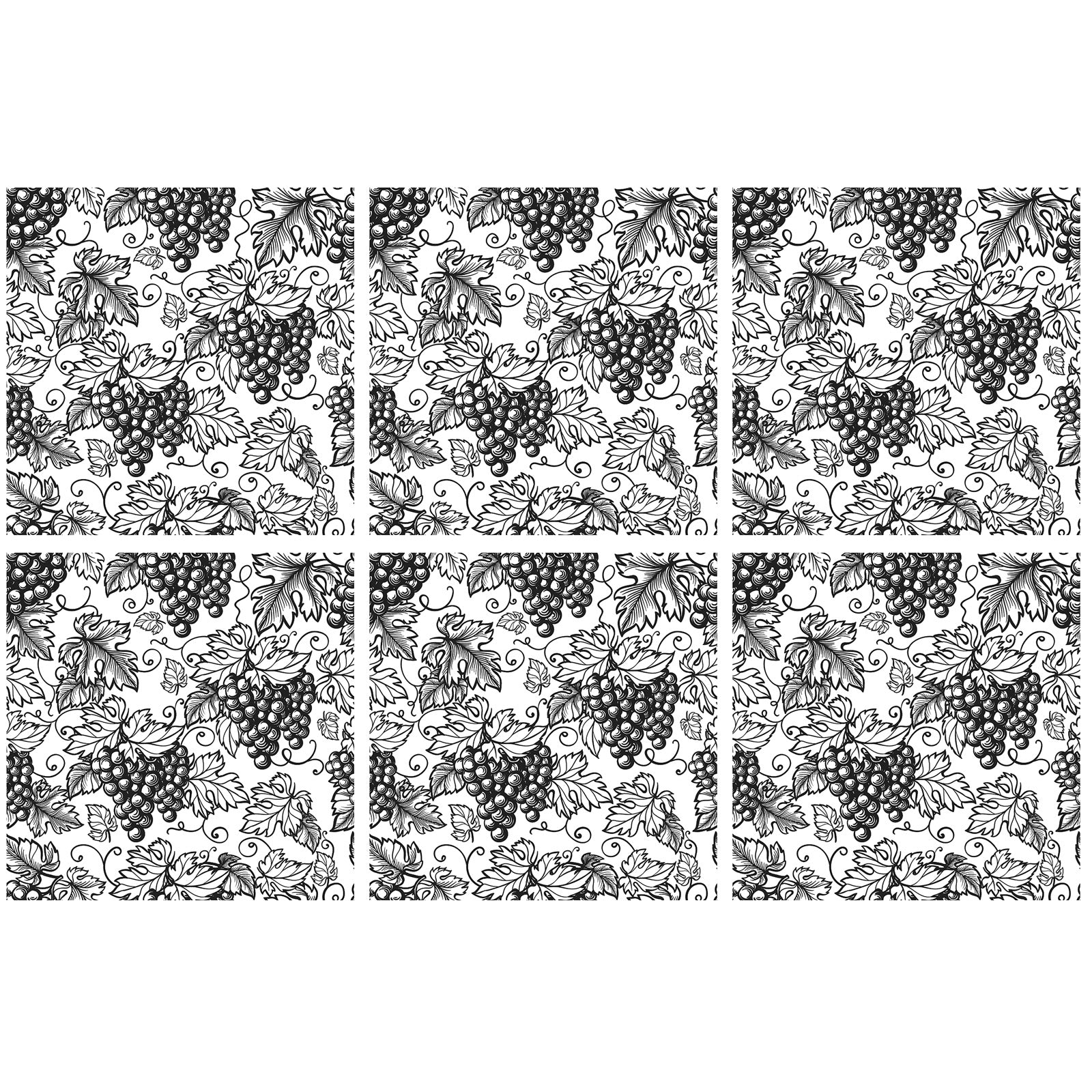 Grapes Tiles 6 pcs 2.5 Inch Black Fused Glass Decals