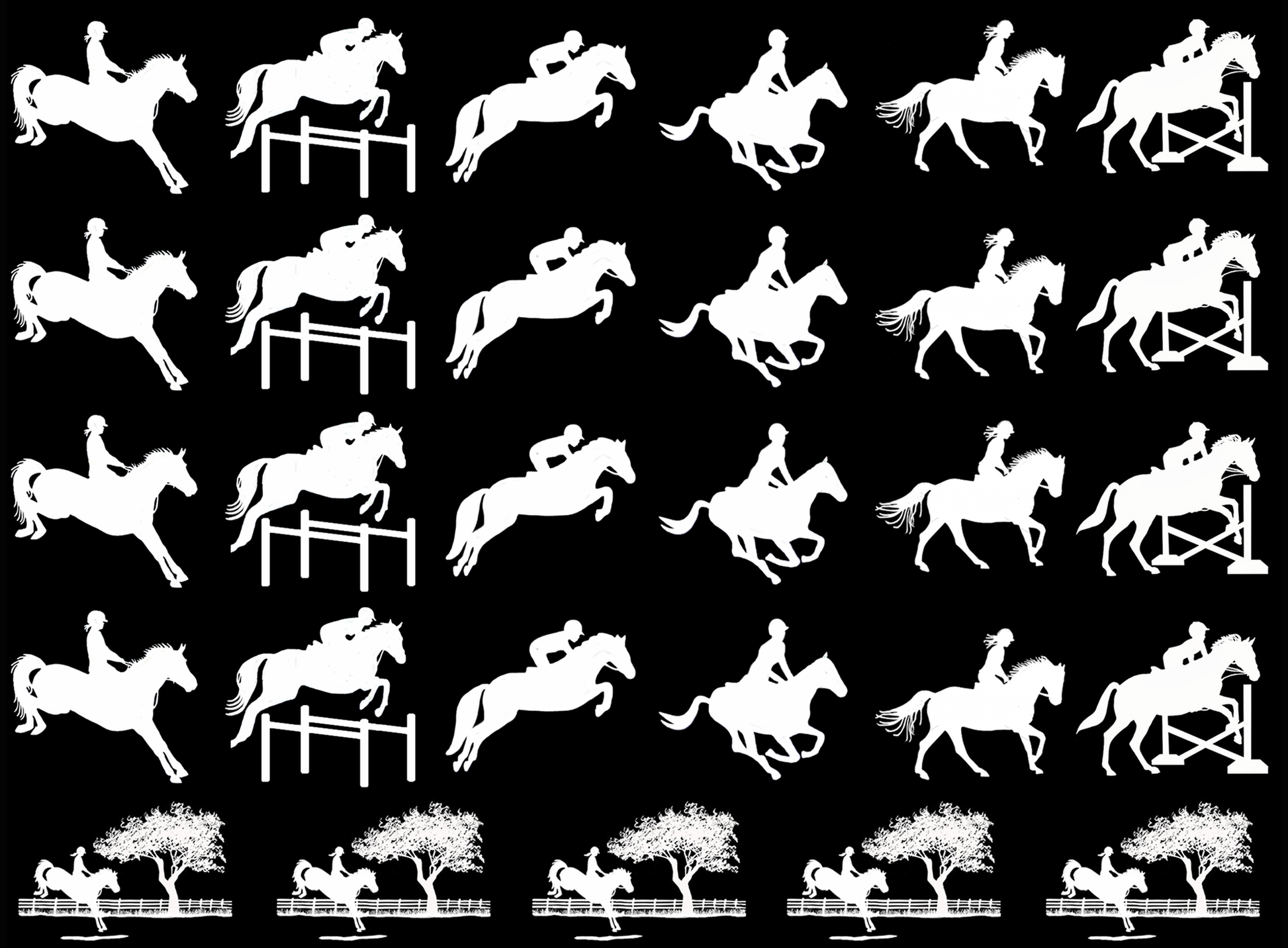 Horse Rider Jumping 29 pcs 1 Inch White Fused Glass Decals