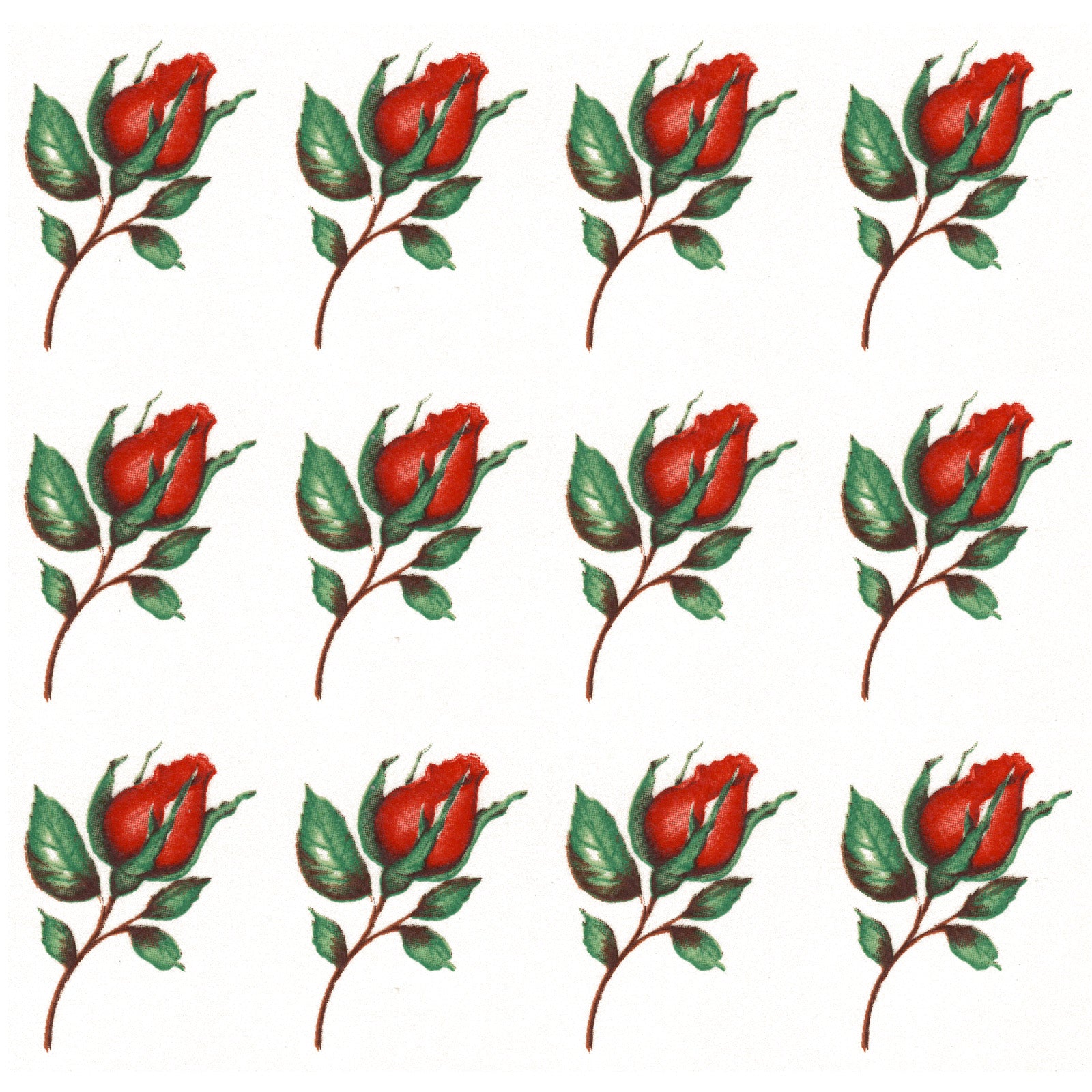 Red Rose Bud Flower Small Overglaze Waterslide Ceramic Decals