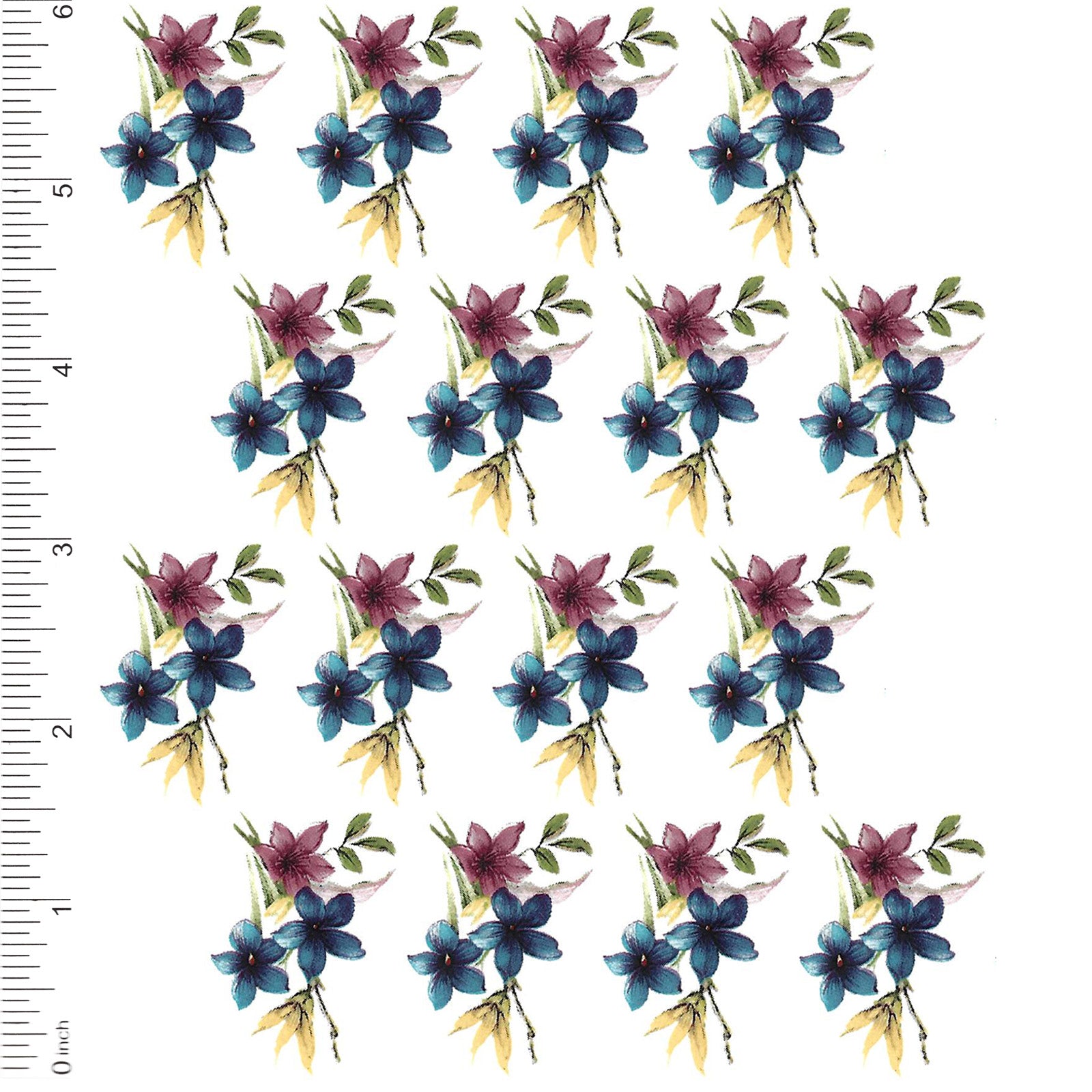 Clematis Spring Flowers 1.5 Inch 16 pcs Small Bouquets Overglaze Ceramic Decals