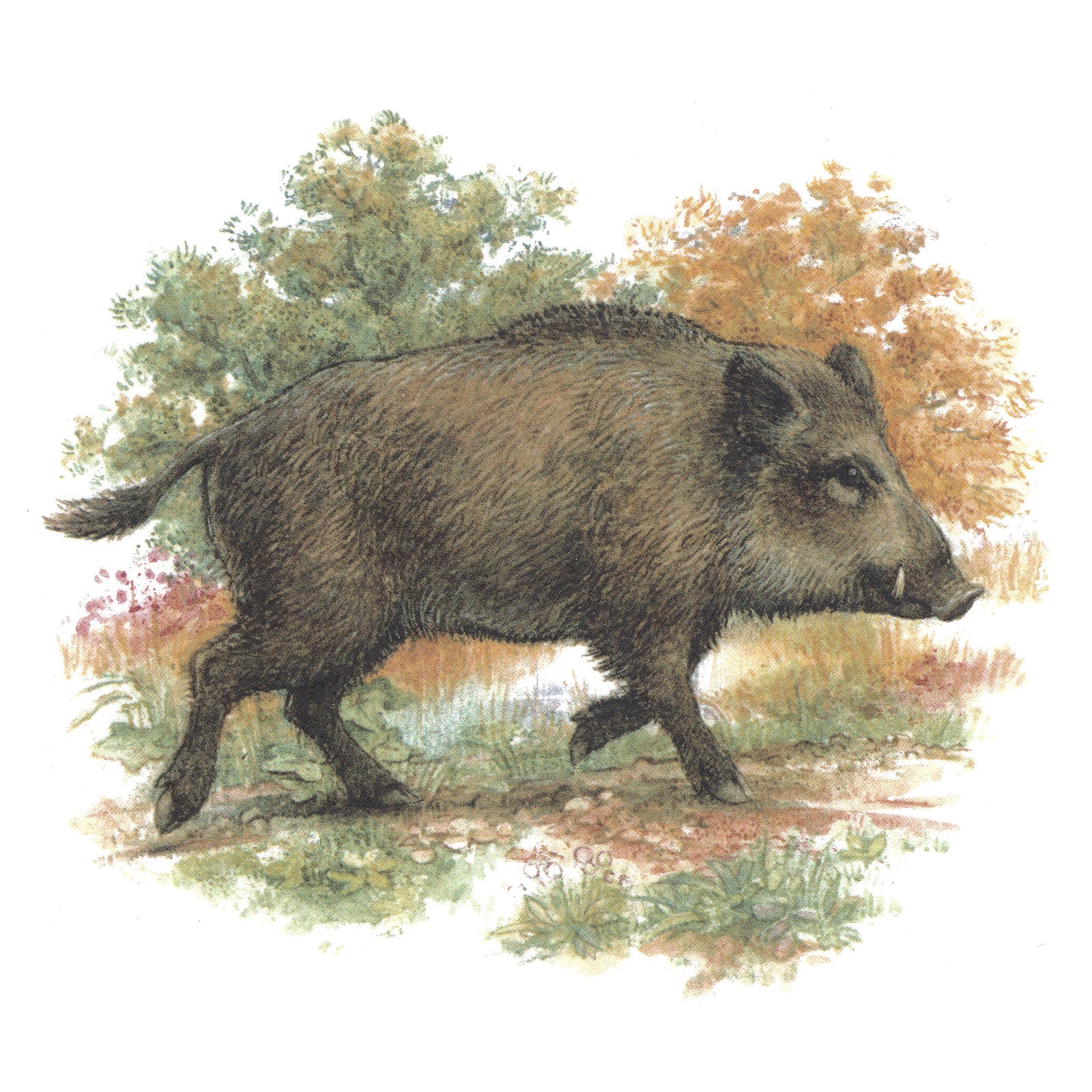 Wild Boar in the Field with Background Overglaze Waterslide Ceramic Decals